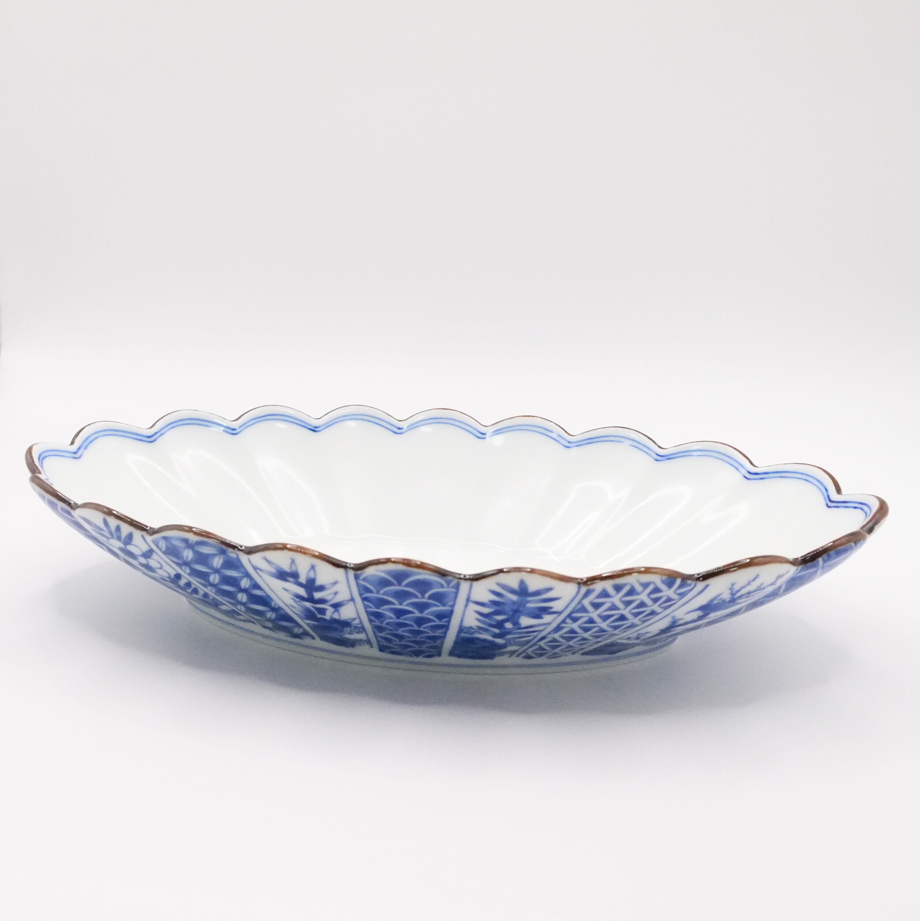 『染付祥瑞 菊割楕円鉢』